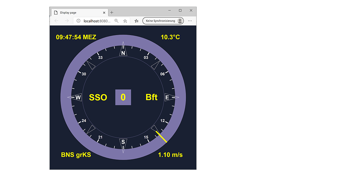 Produktbeispiel III: Die Webbrowser basierte Windrose zur Anzeige aktueller Wind-, Sichtweiten- und Lufttemperaturwerte